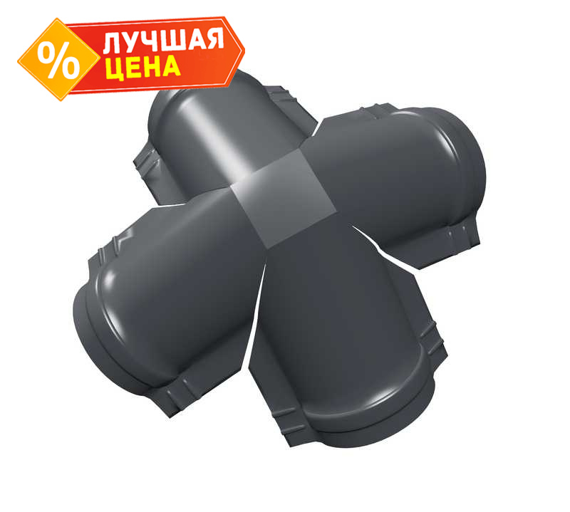 Четверник конька полукруглого Velur с пленкой RAL 7024 мокрый асфальт