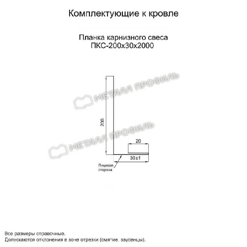 • Планка карнизного свеса 200х30х2000 (ECOSTEEL_T-01-ЗолотойДуб-0.5) не ржавеет.