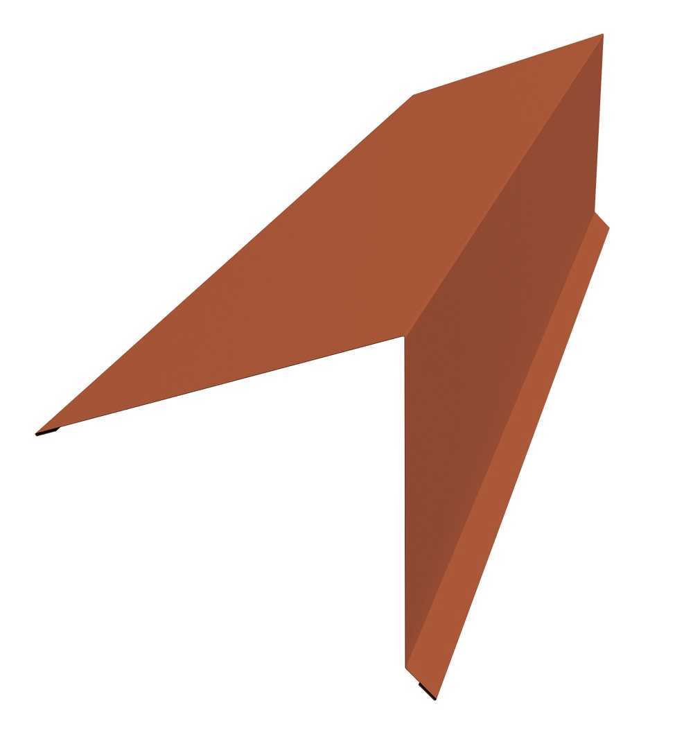 Планка конька односкатной кровли Grand Line 180x160 0,5 GreenCoat Pural BT с пленкой RR 750 кирпично-красный (RAL 8004 терракота)