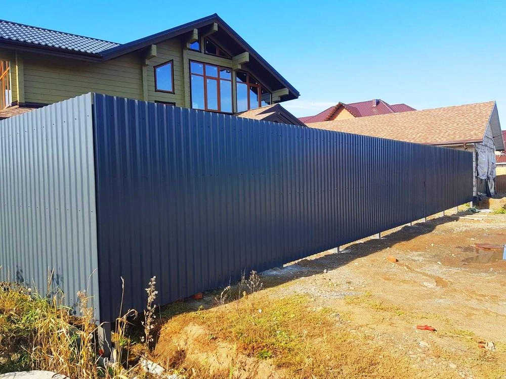Цвет профлиста - серый графит (RAL 7024), который придает зданию элегантный и современный вид. Этот цвет легко сочетается с различными фасадными отделками и позволяет создать стильный и гармоничный образ здания.