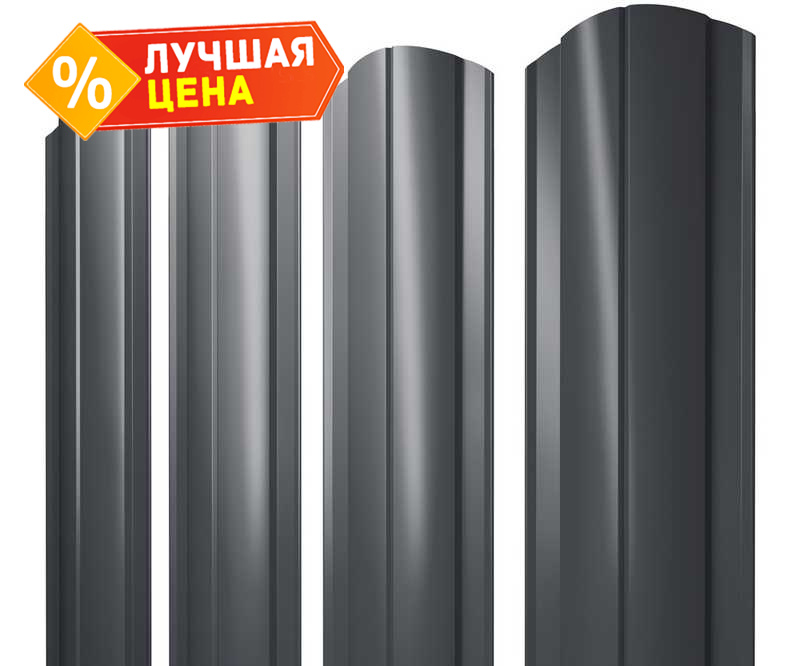 Штакетник Круглый фигурный Grand Line 0,5 Satin RAL7024 Мокрый Асфальт
