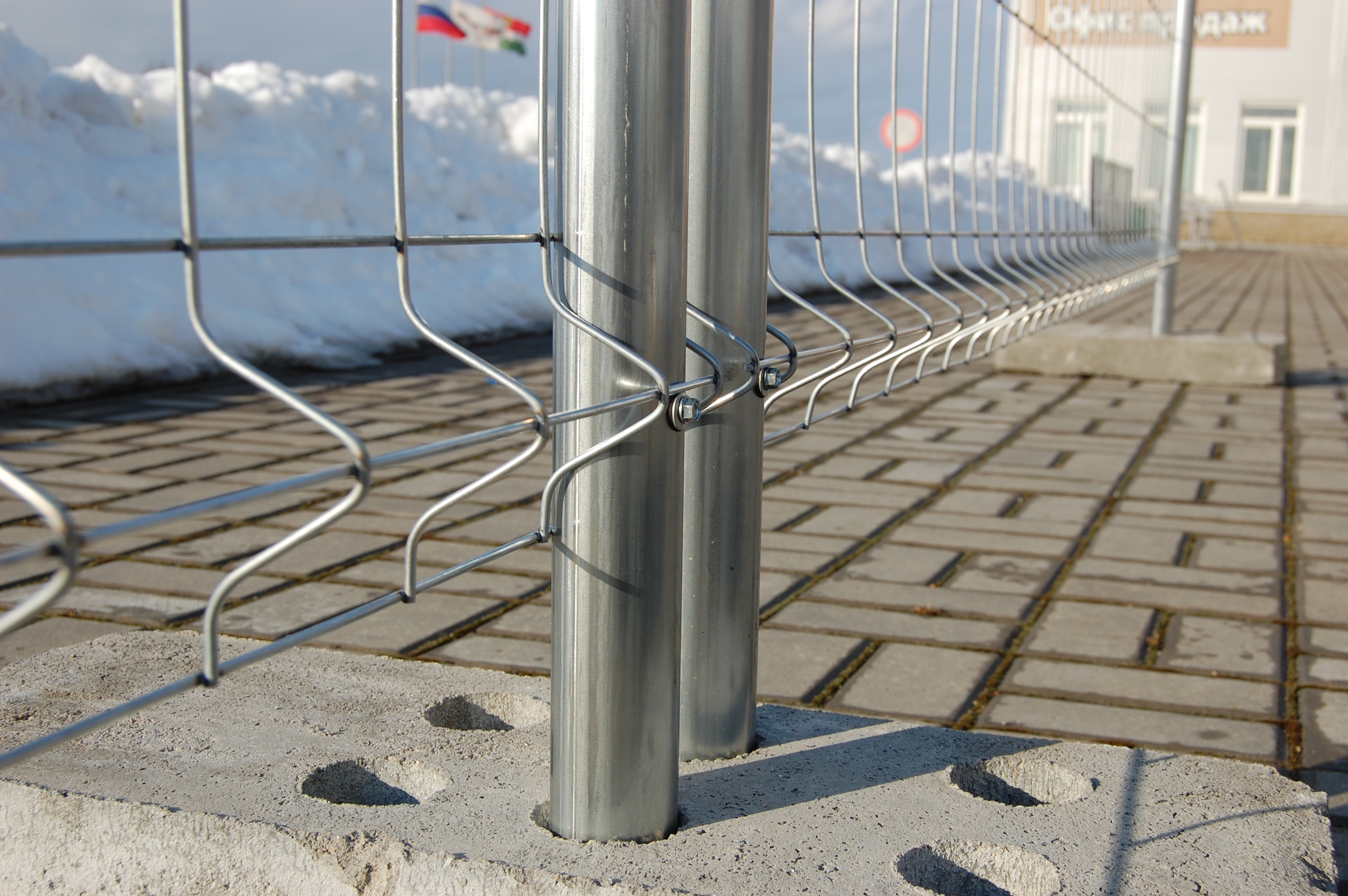 Основание бетонное обеспечивает высокую устойчивость конструкции временного ограждения.